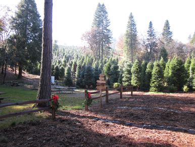 Location: Take Exit 54 off highway 50 and turn left (under the freeway) and immediately rejoin highway 50-West heading back toward Sacramento and exit 1 mile down at the Camino exit (by the gas station). Then go straight cross Carson Road to tree farm entrance.